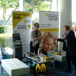Yep – spent the day talking about all kinds of cancer, to all kinds of people. Sure, the majority were nurses (which was interesting in itself), but I also had the opportunity to speak with colleagues from Cancer Council NSW and Victoria, researchers, Dr’s and other health professionals (even health reporters! funny..).