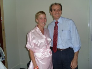 I was laid up with a view of the entrance to the Maternity ward, when I saw him walk past. I was desperate to get his attention to say thank you. I wasn’t technically this Dr’s patient (my Gyno was out of town), I hadn’t had a consultation with him before so he had no prior knowledge of how determined I could be. Obviously he agreed to satisfy my demands for another opinion on my breast lumps, by sending me on to the other Dr D.